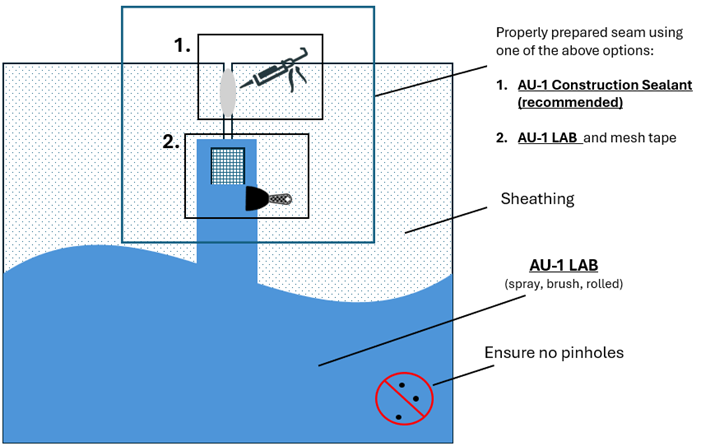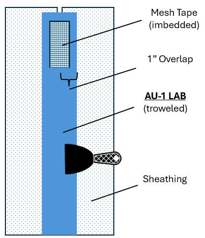 If applying over plywood/OSB sheathing, apply AU-1 Commercial Sealant or mesh tape and AU-1 LAB: