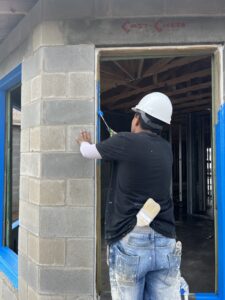 Once all seams and rough openings have been properly prepared as described above, use a brush, roller, or airless sprayer to apply AU-1 LAB to a minimum of 30 wet mils over the exterior surface. Use a wet mil gauge to ensure proper mill thickness. For airless spray application: a 1.15 – 2.5 GPM (gallons per minute) sprayer is recommended with a tip orifice size of .021 - .025 at 3000 PSI. Product should be back-rolled following airless spray application to ensure consistent coverage and eliminate pinholes. When back-rolling or for roller application, a minimum ¾” nap high quality roller is recommended. Application should be performed in a manner ensuring the membrane surface is free of any openings or pinholes. Apply additional AU-1 LAB as needed to ensure a uniform coating with no pinholes across the entirety of the membrane. Allow the product to become tack-free before applying additional coats. Product may be applied up to 60 wet mils without sagging. Allow product to become tack-free before installing cladding or any components into rough openings. Tack-free times may vary by humidity and conditions. Check local building codes for additional recommendations or requirements.